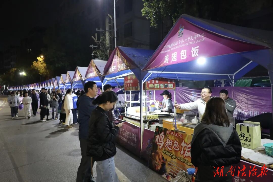 赛场内激战正酣,赛场外同样热闹非凡。新田血鸭、醋水豆腐、油炸粑粑等特色小吃摊位前人头攒动,浓郁的地方风味吸引着球迷与市民驻足品尝。