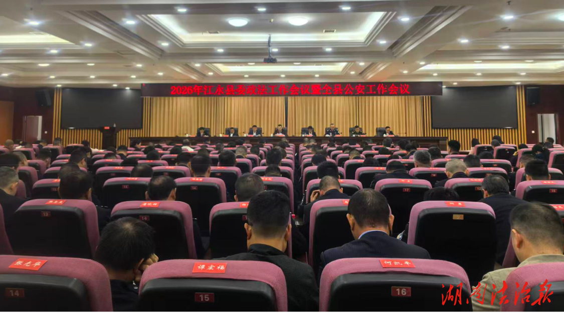 报告强调,2026年,是“十五五”开局之年、建党105周年,全县政法机关要始终以习近平新时代中国特色社会主义思想为指导,深学笃行习近平法治思想和总体国家安全观,深刻领悟“两个确立”的决定性意义、坚决做到“两个维护”,牢牢把握习近平总书记对政法工作“维护国家政治安全、确保社会大局稳定、促进社会公平正义、保障人民安居乐业”的四大核心职责,坚持党的绝对领导、坚持以人民为中心、坚持统筹发展和安全,以团结拼搏、永不言弃的“永冲锋”精神为内核,在深化实施“八大工程”基础上,以政治、平安、法治、基础、队伍五大建设为主线,锚定建设更高水平的平安江永、法治江永,护航“十五五”良好开局、推进中国式现代化江永实践的总目标,以“时不我待、只争朝夕”的紧迫感,以“逢山开路、遇水架桥”的攻坚力,以“踏石留印、抓铁有痕”的实干劲,开拓创新、真抓实干、紧抓快干,奋力建设更高水平的平安江永、法治江永,为推进中国式现代化江永实践作出新的更大贡献。(供稿:江永县委政法委)