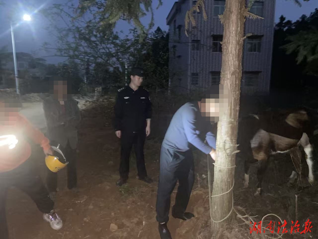 湖南法治报讯(通讯员 梁江文)4月22日傍晚,东安县公安局新圩江派出所民警在“守护潇湘2026·深耕行动”走访途中发现村民唐某的黄牛走失,“情指行”一体化响应机制仅用两小时便将牛找回。此时距离黄牛走失刚过两小时,唐某甚至还未来得及报警。