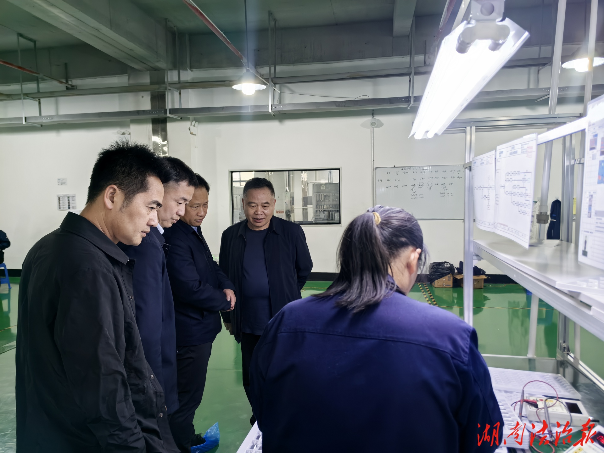 走访过程中,该公司领导一行首先来到湖南睿奕美尼新能源有限公司,详细查看了排水系统、电气线路等关键部位,重点询问雷暴雨期间厂区积水、供水供电保障、设备运行、原材料防护等情况。企业负责人反馈,生产线未受较大影响,但厂区局部区域出现短时积水,厂房排水系统不畅,个别下水管渗水。产建投主要领导当即要求随同人员围绕厂房排水沟检查一遍,把杂草、杂物清理干净,抓紧联系维修人员尽早解决下水管渗水的问题。随后,深入车间了解生产、设备、用工、员工收入等情况。