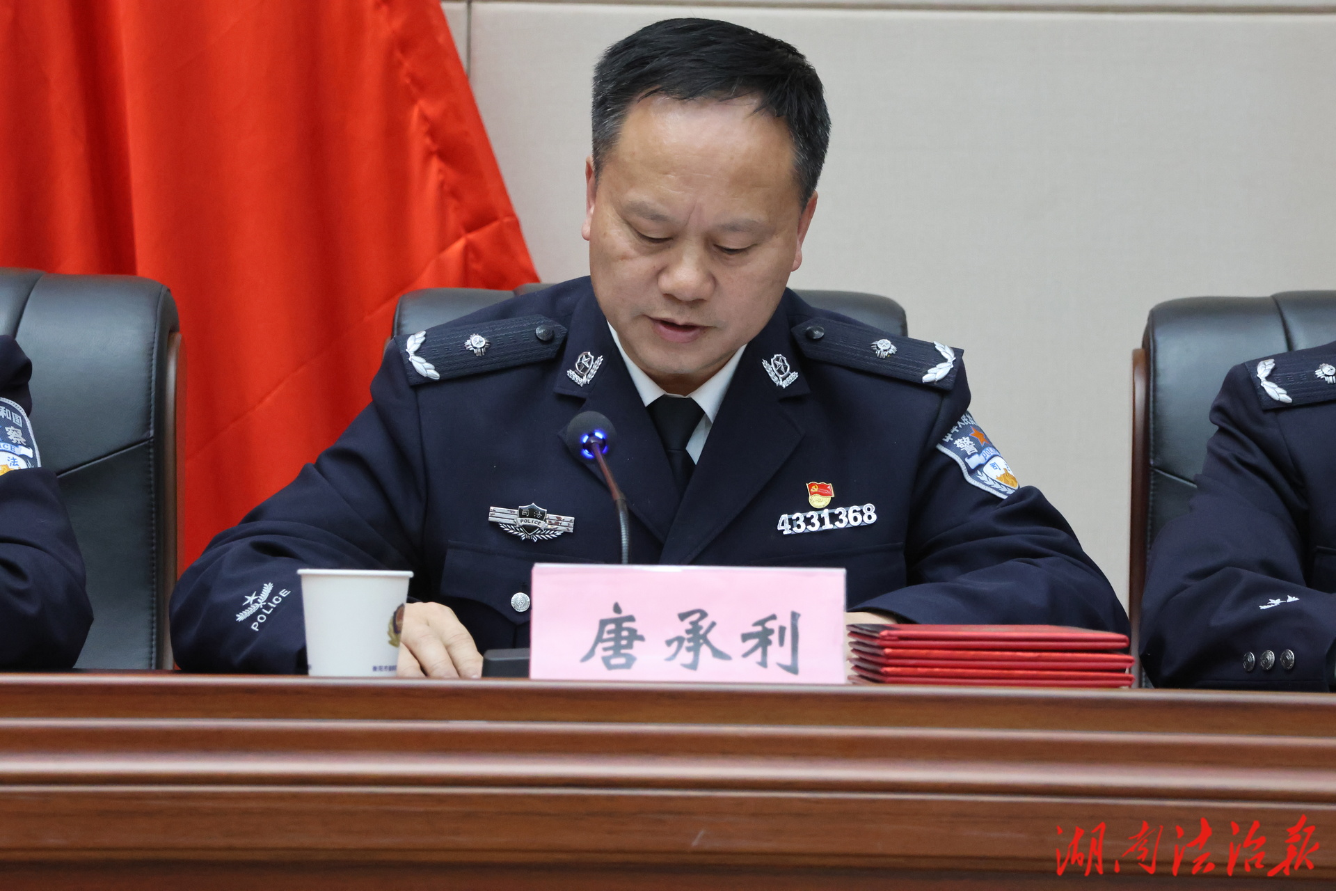 所党委委员、副所长唐承利宣读《衡阳市强制隔离戒毒所关于表彰2025年度先进集体、先进个人的决定》。