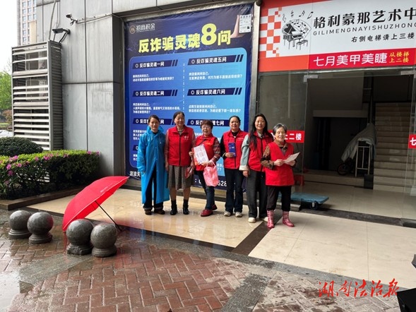 湖南法治报讯(通讯员:邹彬)2026年4月15日是第11个全民国家安全教育日。上午9:00,天心区文源街道金汇社区在新宁路与金汇路交叉十字路口组织开展国家安全暨平安建设集中宣传活动。20余名平安志愿者们热情参与,鲜艳的“红背心”忙碌穿梭的背影,为细雨纷飞的街巷增添了融融暖意。
