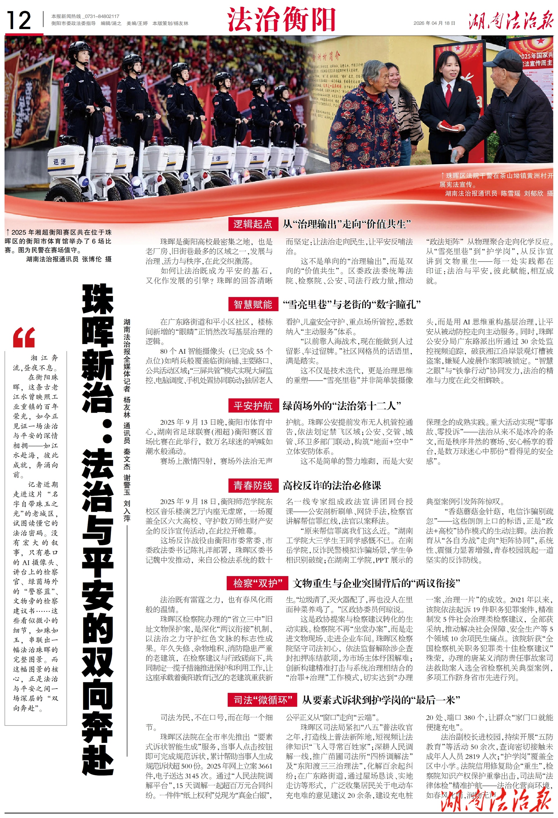 如何让法治既成为平安的基石,又化作发展的引擎?珠晖的回答清晰而坚定:让法治走向民生,让平安反哺法治。