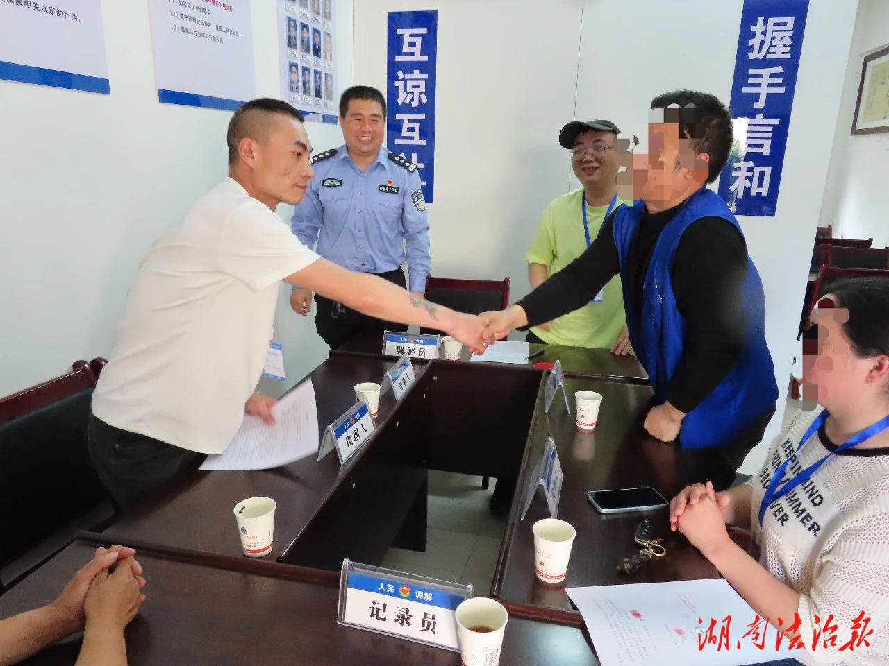 4月1日下午,雪峰派出所接到报警,称某出租屋内有人因口角引发肢体冲突。民辅警迅速赶到现场,经了解,周某烈与罗某花因琐事发生口角继而动手。民警将双方带回派出所耐心调解,最终两人自愿达成和解协议,握手言和。