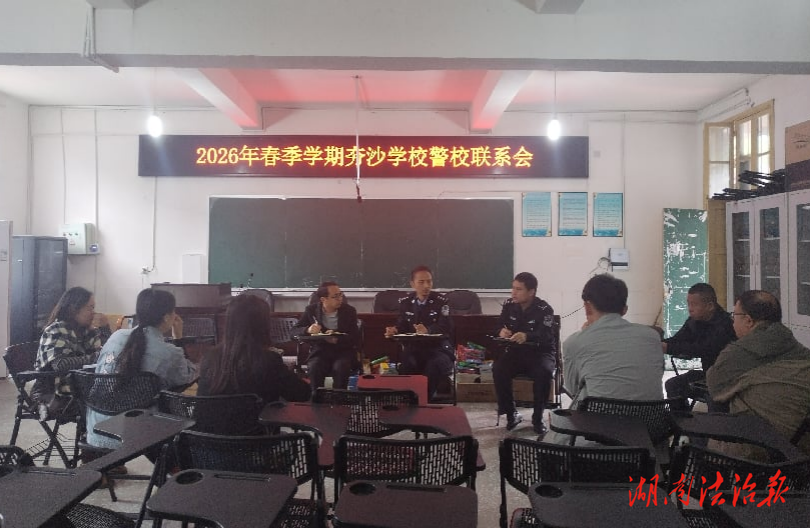 湖南法治报讯(通讯员 石云臻 彭昌剑)为深入贯彻“主动警务、预防警务”理念,深化警校协作,织密校园安全防护网,切实守护辖区青少年健康成长,4月19日,保靖县公安局吕洞山派出所深入夯沙学校召开警校联系会,派出所民警、学校领导及相关负责人参加会议,围绕校园安全重点工作开展深入交流,进一步完善警校协作机制,凝聚护校安园强大合力。