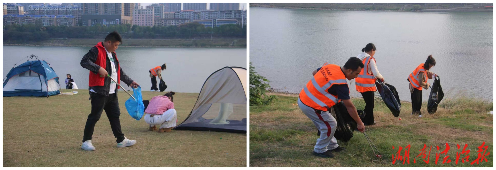 (图为志愿服务队员在湘江西路捡拾垃圾 叶若兰摄)