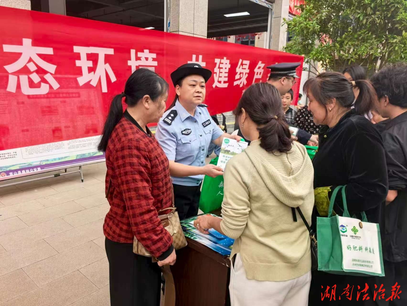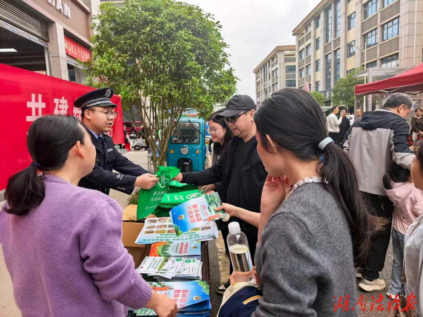 湖南法治报讯(通讯员 蔡斌)4月18日上午,借助“乐享蓝山·消费惠民”主题活动,蓝山县森林公安局在湘江源皮具城开展“守护生态环境·共建绿色家园”主题宣传活动。民警通过形式多样的宣讲,向群众普及野生动植物保护、森林防火、环境污染防治等知识,全力筑牢湘江源头生态安全屏障。