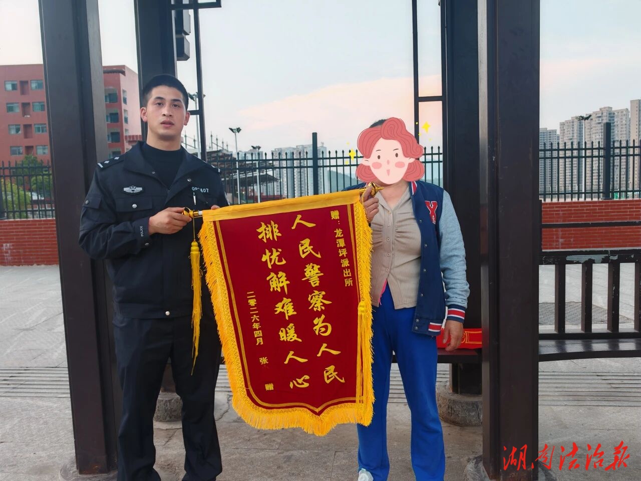 湖南法治报讯(通讯员 陈嘉曼)“太感谢你们了,要是没有你们耐心调解,我的赔偿问题,不知道什么时候才能拿到!”4 月 19 日,张女士将一面印有 “人民警察为人民,排忧解难暖人心” 字样的锦旗送到龙潭坪派出所,对民辅警成功调解犬只伤人纠纷、维护自身合法权益表示衷心感谢。