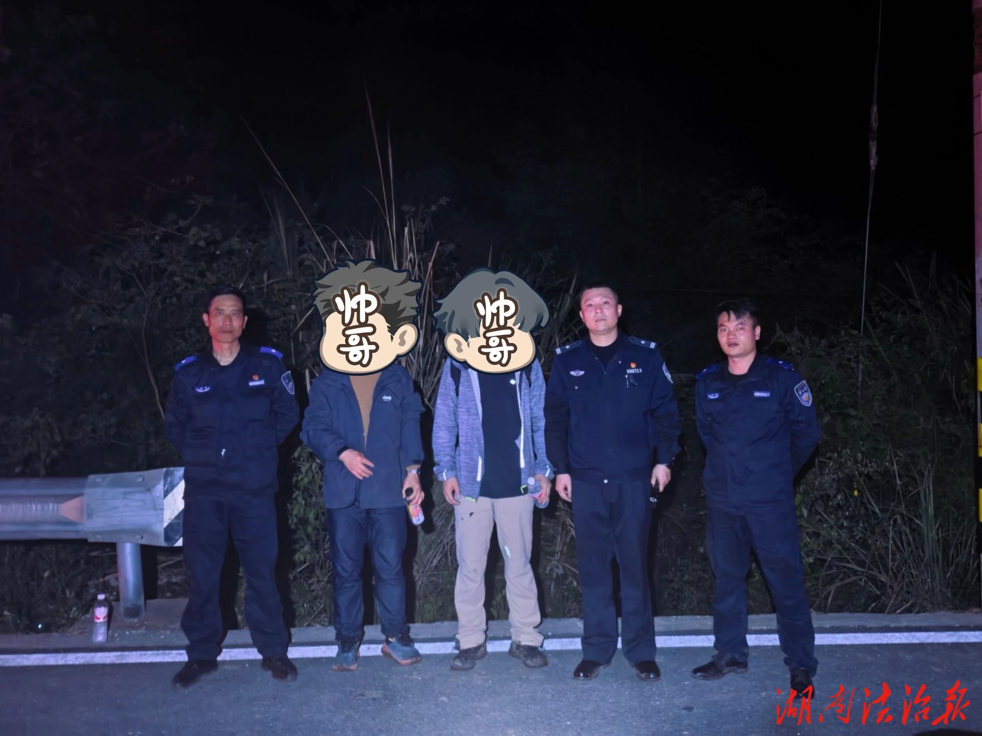 茅岩河派出所教导员辜仪带领民辅警迅速赶赴现场。途中,救援民辅警第一时间与游客取得联系。经沟通确认,两名游客因地形不熟、低估了夜间山区的复杂情况,在徒步途中被困。