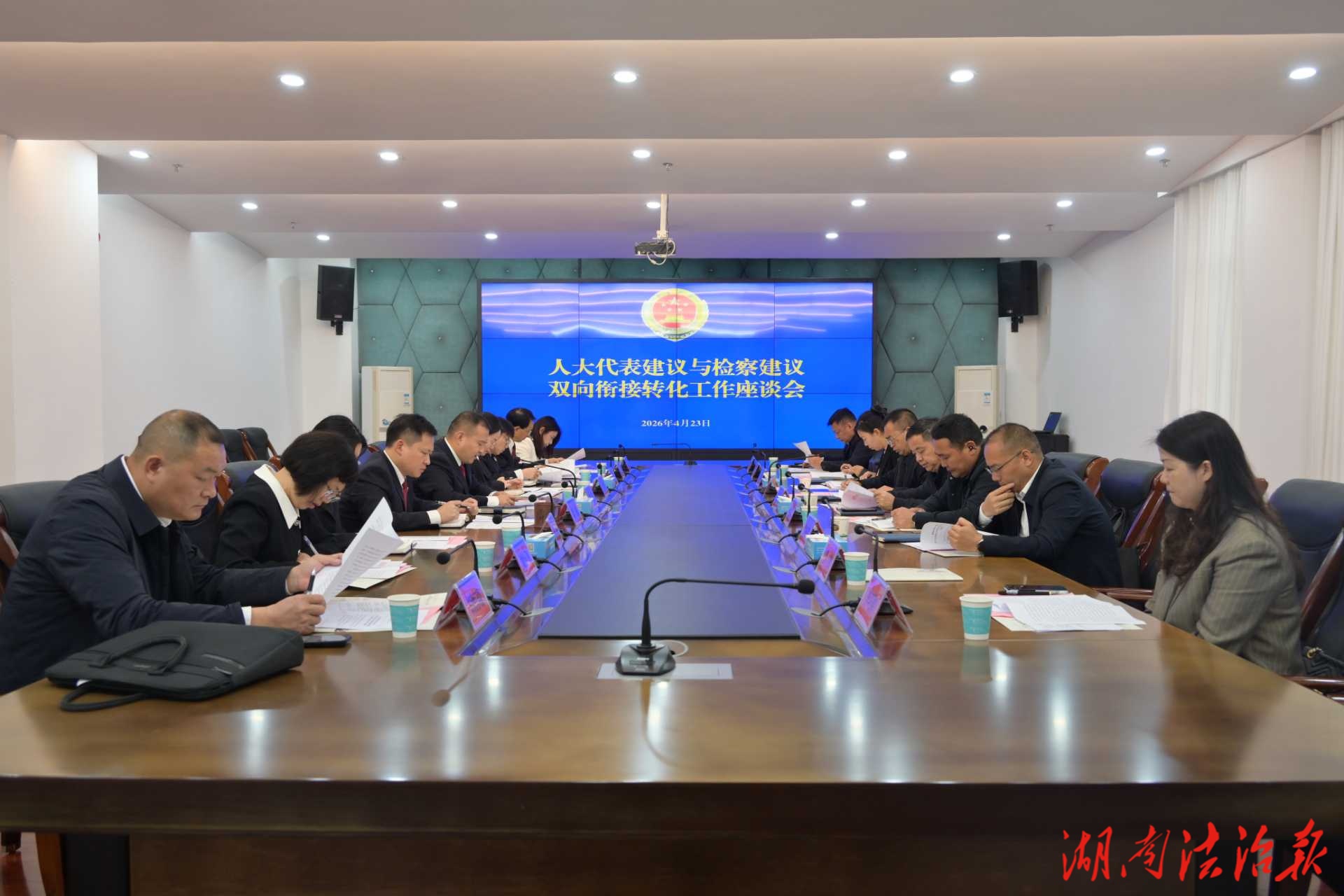 4月23日上午,苏仙区人大代表建议与检察建议双向衔接转化工作座谈会在区人民检察院召开。区人大常委会党组副书记、副主任张民出席会议并讲话,区检察院党组书记、检察长喻超、部分人大代表参加座谈。
