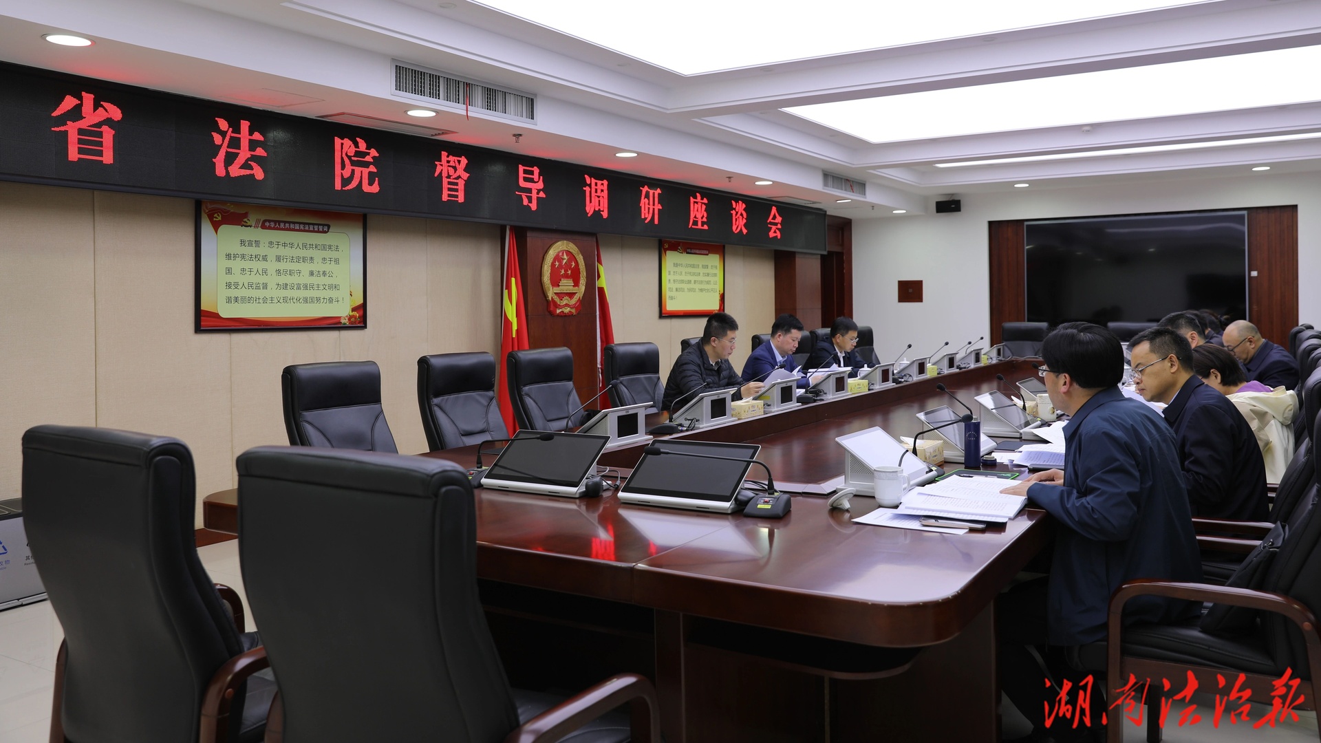 4月22日至23日,湖南省高级人民法院党组成员、副院长左牧一行到常德两级法院开展督导调研并召开座谈会。常德中院党组书记、院长柏广衡主持会议,市中院在家院领导、相关部门负责人及鼎城区、临澧县法院院长参加座谈。