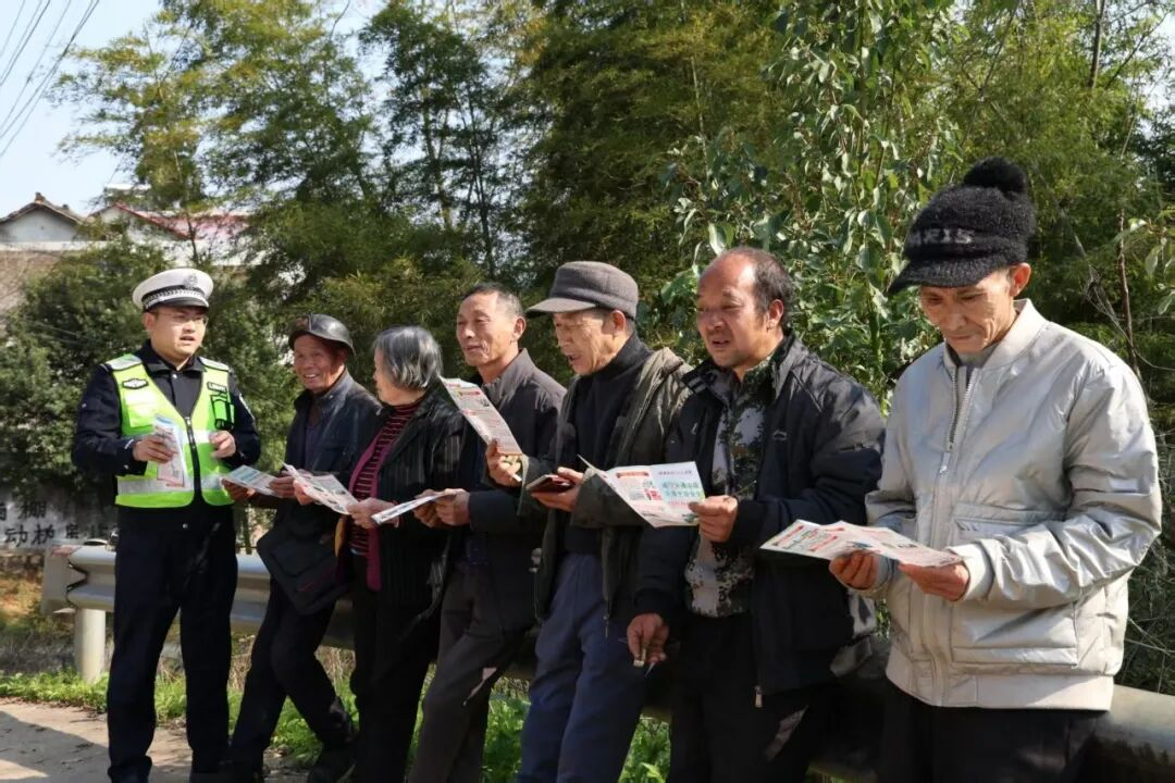 活动中,民辅警带着满满的关怀与实用的交通安全知识,走进村民家门口,通过发放图文并茂的宣传手册、与村民“拉家常”等方式亲切交流,将交通安全法律法规、安全出行常识融入交谈话语当中;针对农村道路常见的三轮车违法载人、无证驾驶、酒后驾车、骑乘车辆不戴头盔等突出问题,用通俗易懂的语言讲解交通违法行为的危害及相关法律法规。并沿途在主要道路、各村居、小卖部等人员密集区域悬挂宣传横幅、张贴宣传海报,以醒目的标语提醒村民时刻遵守交通规则。