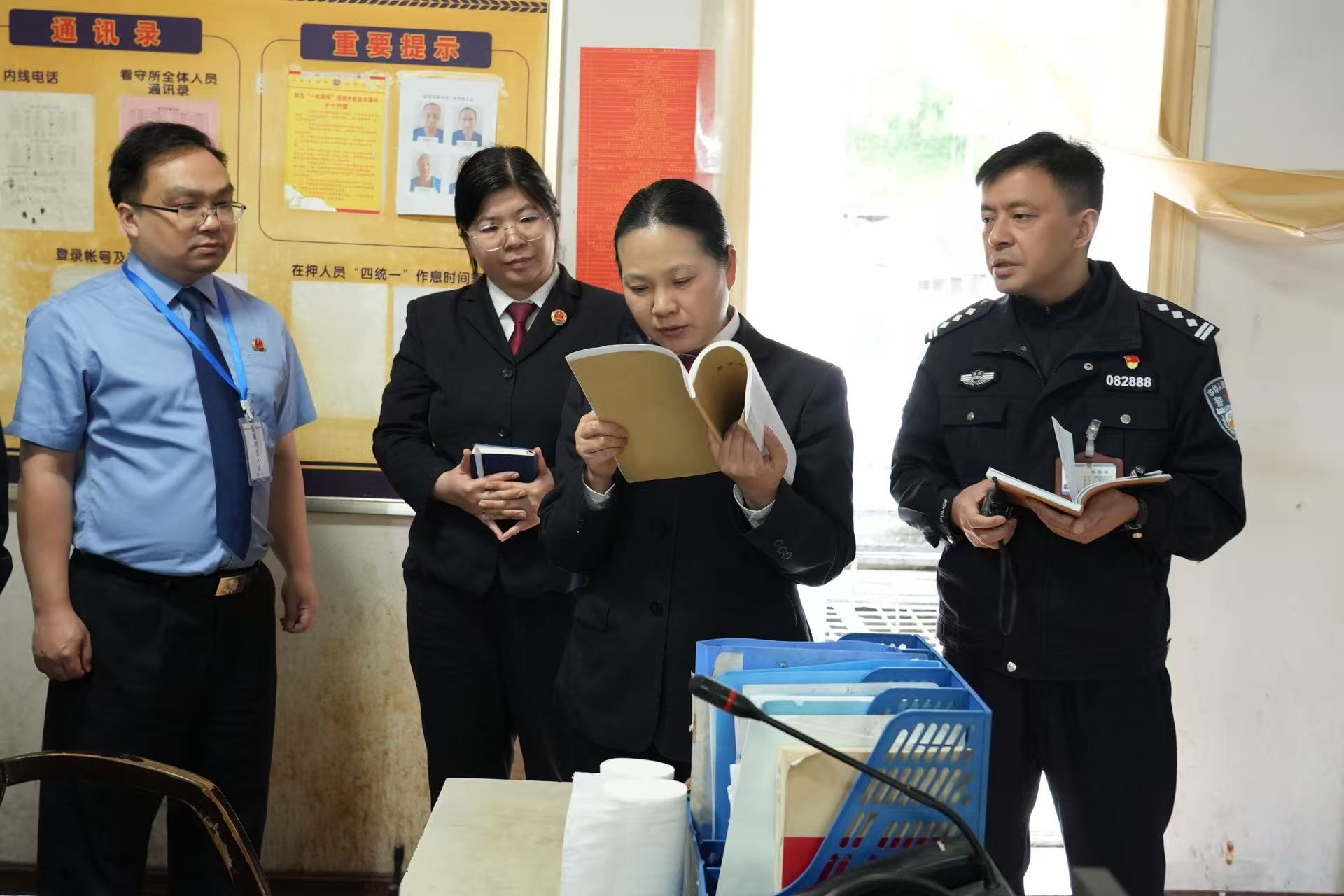 检查组先后前往县看守所监区、监控中心、医务室、食堂、谈话室等监管重点区域,对监控设备运行、消防设施配备、警戒防护装备使用、在押人员生活起居、饮食卫生安全、药品规范管理、值班值守落实、应急处置预案等关键环节进行全方位、无死角检查。同时,仔细查阅监管工作台账、日常安全巡查记录,精准排查监管工作中存在的潜在安全隐患与管理薄弱环节,确保各类风险隐患早发现、早预警、早处置。
