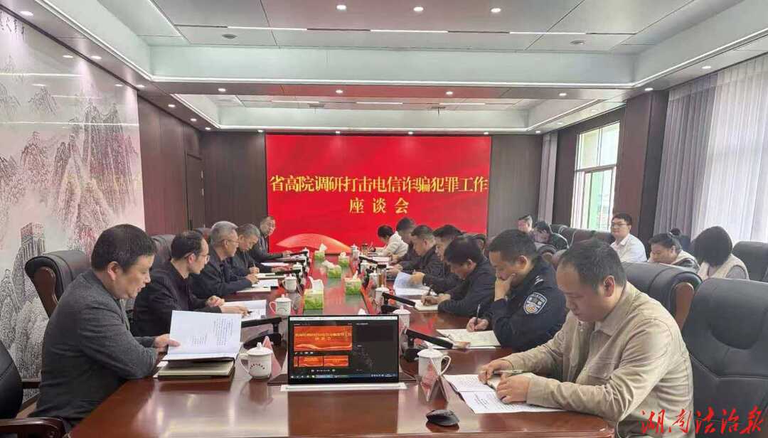 湖南法治报讯(通讯员 蒋科军 王皓 向晓玲)为深入打击治理电信网络诈骗、跨境违法犯罪工作走深走实,精准掌握反诈打跨工作开展实效,破解司法实践难点堵点。4月24日,省法院刑二庭庭长谭青峰、法官助理黄会峰、市中院审委会委员刁俊军一行到祁东县法院开展指导调研工作并召开座谈会。祁东县人民法院院长李星耀、审委会专职委员刘卫东、张斌陪同调研,县政法委、检察院、公安局、司法局相关负责人共同参加座谈会。