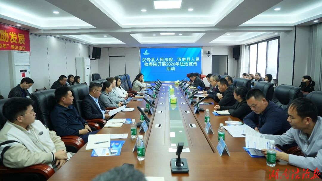 为深入贯彻落实“企业服务年”工作部署,持续优化法治化营商环境,2026年4月29日,汉寿法院与汉寿检察院联合走进汉寿高新技术产业园区,共同开展“护航用工促和谐、精准服务助发展”专项法治宣传活动。汉寿法院党组成员、副院长匡建军;汉寿检察院党组成员、副检察长陈运亚共同带队,汉寿县人大监察和司法委副主任委员黄林霞及部分人大代表、政协委员应邀参与,园区企业代表40余人参加。
